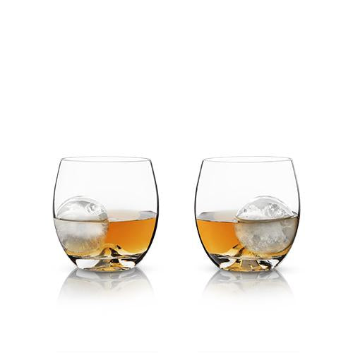 Each crystal liquor tumbler is sculpted with a circular channel to match the exact proportions of the ice ball made by its accompanying silicone ice mold. Drop the icy sphere into the channel to chill your liquor faster and last longer than coarse cubes. Each set includes two crystal tumblers and two silicone ice molds. Instructions: Fill the hollow silicone ball with water and place in the freezer for at least 4 hours. Using the thumb grip;remove the cap to easily access the spherical ice ball inside. Place the ice sphere in your glass of whiskey, scotch, bourbon or any other liquor of your choice. The slow-melting ice ball will naturally roll in a circular motion on the base of your glass as you sip, cooling the liquor evenly.