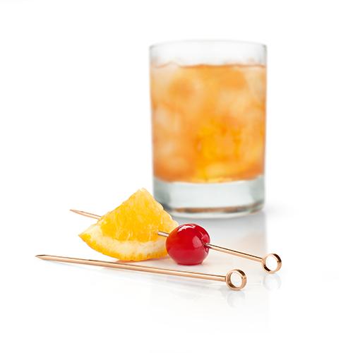 Pick your poison. Each cocktail pick in our classic set of six is finished with a small steel ring, ideal for propping an olive in your martini or a brandied cherry in your Manhattan.