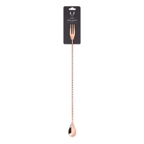 Designed for the quickest swizzling and stirring, our copper trident barspoon spins its way from a smoothly concave spoon bowl to a forked tip at the stem’s far end. An aesthetic nod to the nautical, the trident also works for spearing the perfect garnish to cap your drink.