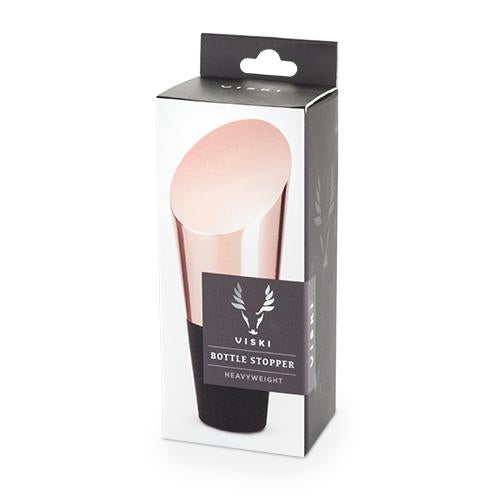 Eye-catching copper with a smooth silicone sleeve puts our heavyweight bottle stopper in center stage. Seemingly austere in shape, the slanted crown and burnished metal suggest an opulence that transcends the average tavern contrivance. Hand Wash Only