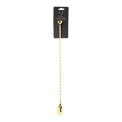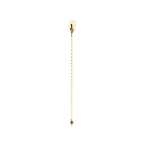 Designed for the smoothest swizzling and stirring, our gleaming gold muddler barspoon twists its way from a concave spoon bowl along a 40 centimeter stem to end in a strong, perfectly flat muddler base. Precisely balanced for effortlessly adept mixology.