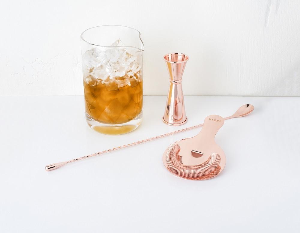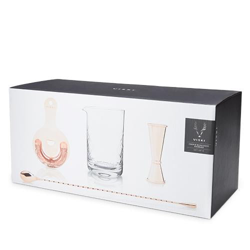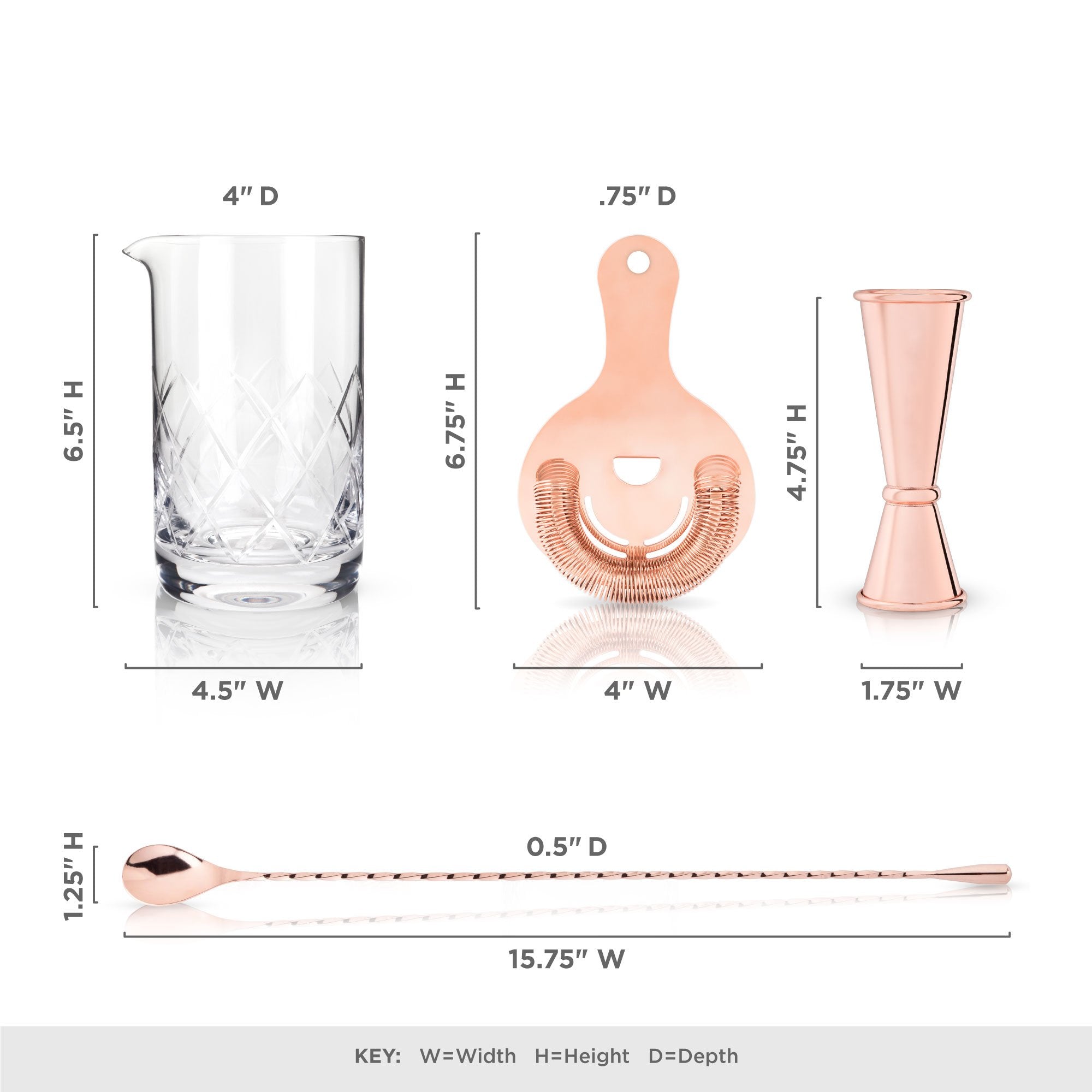 Shake up your bar collection with these copper and crystal contenders. Our 4-piece commercial-grade barware set is perfect for creating cocktails of quality, whether you're a pro or just starting out. Our kit includes: