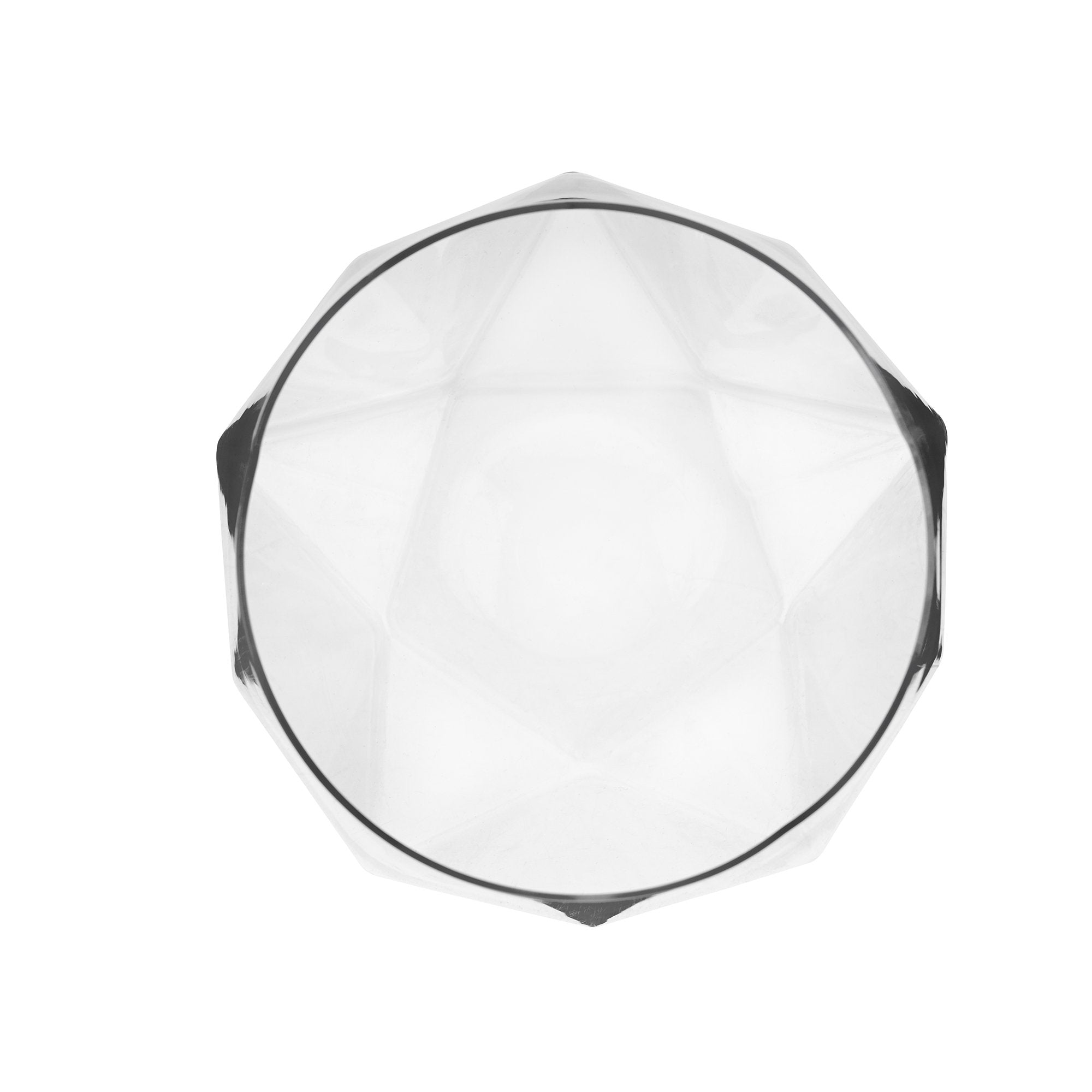 Splitting off from a star-shaped base, trigonal sides make this polyfaceted crystal wine glass uncommonly captivating. With each face sending prismatic light in splintered rays through your pinot or cabernet, the glass itself rounds out smoothly as it reaches the rim for the perfect sip.