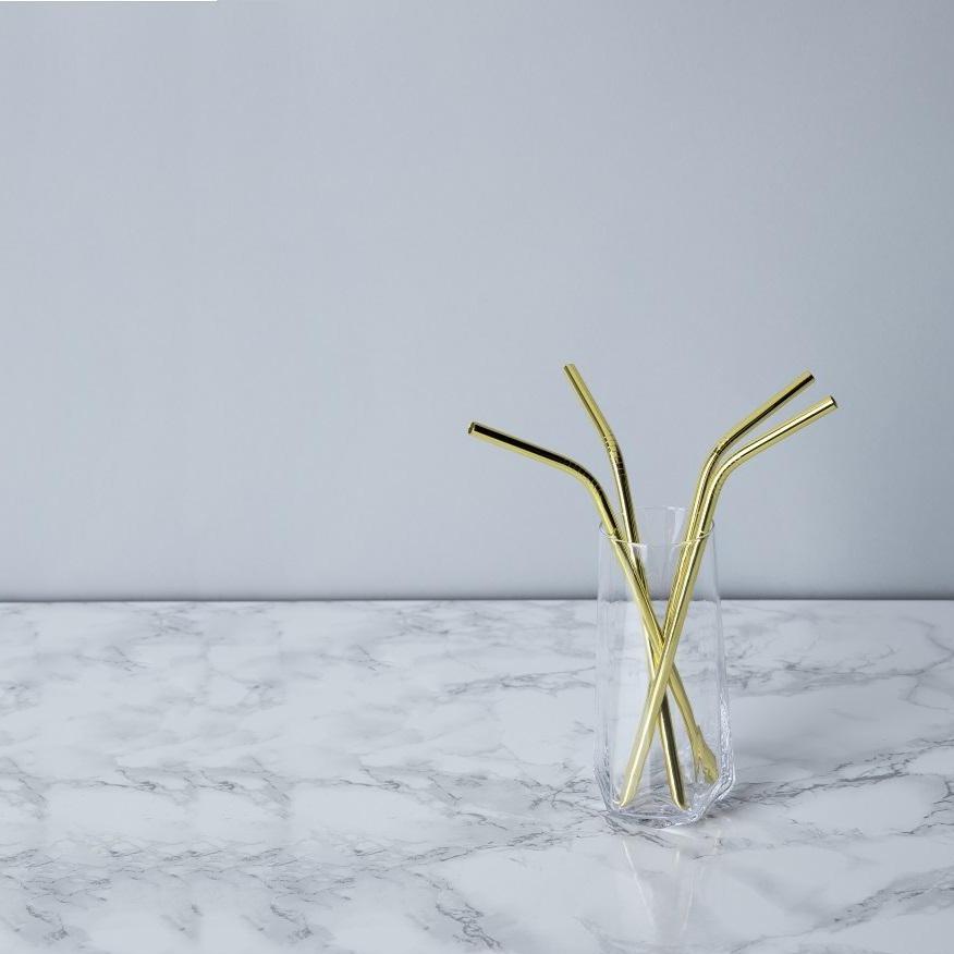 Skip the cherry and garnish your drink with a classic gold cocktail straw. Each one in this set of four arcs smoothly from any highball glass to your lips for the perfect sip.