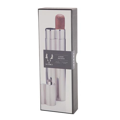 Keep two cigars in a classic 52-gauge stainless steel case to have them close at hand at any opportune moment. Opening the cap releases the rich, leathery aroma of hand-rolled tobacco within.